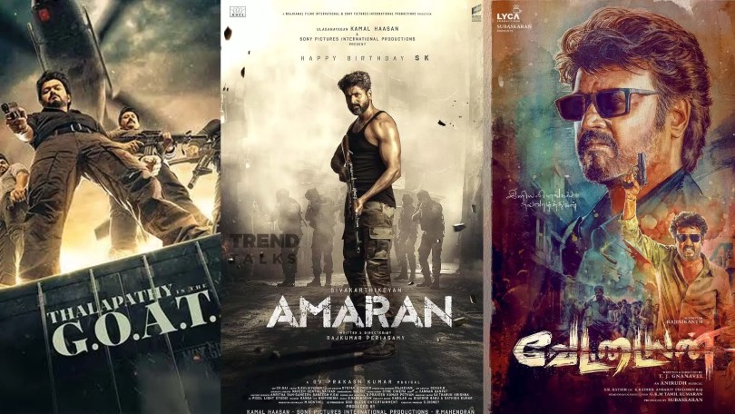 இந்த ஆண்டில் அதிகபட்ச வசூலாக விஜய் நடித்து வெளிவந்த ‘தி கோட்’ படம் 450 கோடிக்கும் அதிகமாக வசூலித்தது. அதற்கடுத்த இடத்தில் 310 கோடியை சிவகார்த்திகேயன் நடித்த ‘அமரன்’ படம். ரஜினி நடித்த ‘வேட்டையன்’, கமல் நடித்த ‘இந்தியன் 2’ தனுஷ் நடித்த ‘ராயன்’,விஜய் சேதுபதி நடித்த ‘மகாராஜா’, விக்ரம் நடித்த ‘தங்கலான்’ ஆகிய படங்கள் 100 கோடியைக் கடந்தன.